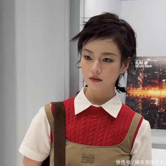 赵今麦又出现了。这次是短发造型,头发用夹子固定住。脸很小,五官很清楚。同样是短发,这次感觉不一样。发尾有点翘起来,这个细节让整个样子活了一些。前几天那个造型不是这样,那个造型把人往成熟的方向推,推得有点用力过猛。现在这个翘起来的发尾把那股劲儿拉回来一点。它让整个画面有了一个向上的、轻松的支点。造型这件事,有时候就是一个支点的事。多一分或者少一分,出来的东西完全是两个方向。你很难说清楚那个精确的刻度在哪里,但它出现的时候你能认出来。这次认出来了。可爱这个词现在被用得太随便了。但放在这里,我觉得可以接受。不是那种刻意摆出来的可爱,是那个翘起来的发尾和清晰的脸部线条一起作用的结果。是一种状态,不是一种表演。短发其实很考验人。它把所有的东西都摆在明面上,头发没有那么多量去修饰轮廓,脸型、五官、甚至神态都变得直接。所以处理短发,往往是在做减法。减掉多余的装饰,找到那个最核心的、属于她自己的样子。这次找到了。或者说,至少在这个瞬间,这个造型碰对了那个样子。