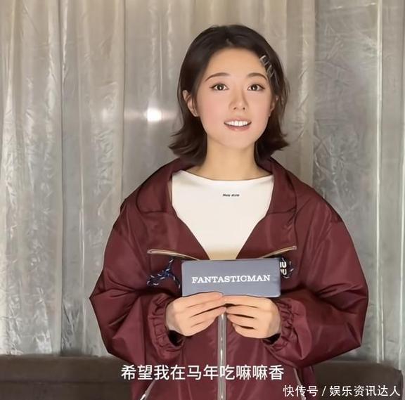 她对着镜头说,马年想吃得特别好。她拿马年和“嘛嘛”开了个玩笑。这个玩笑很轻,没什么负担。衣服和发型都对了。站在那儿,漂亮和可爱都有了。这是一种很直接的好看。