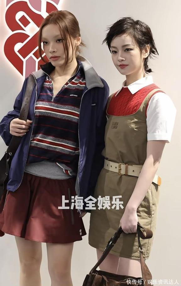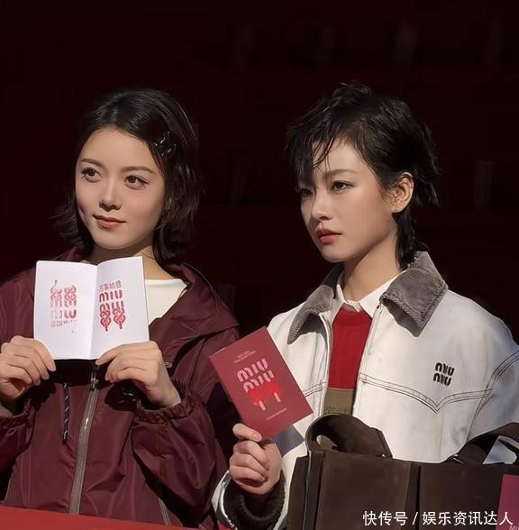 墨蓝色眼尾向上挑。她短发,发尾扎了两个小辫子。这让她看起来有点不一样。刘柏辛也在场。这两个人都带着自己的个性。但你多看几眼。刘柏辛的表情和身体姿态给出了更多东西。她的表现力覆盖了更大的面积。或者说,她的表现力更结实。这不是谁好谁坏的问题。是浓度问题。一个画面里,信息密度决定了谁先被看见。